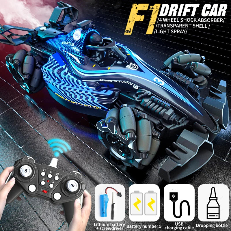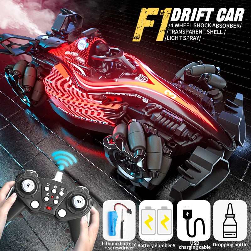 Take your RC experience to the next level with this dynamic, spray-equipped drift car. Designed for thrilling movement and visual excitement, it offers realistic engine sounds, LED lighting, and full-directional control for creative play.