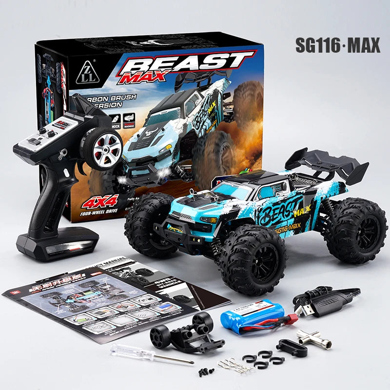 Push the limits of performance with this powerful RC car, built for serious off-road action. Choose between the high-speed brushless version or the durable carbon-brush option—both designed for all-terrain domination with metal components, LED lighting, and a fully responsive remote control system.